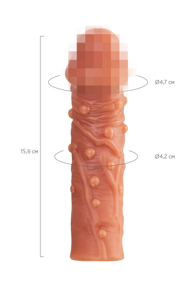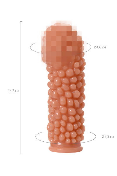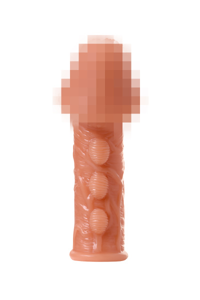 Насадка KOKOS реалистичная с дополнительной стимуляцией, TPE,телесная, 15,6 см, Ø 4,7 с пупырышками
