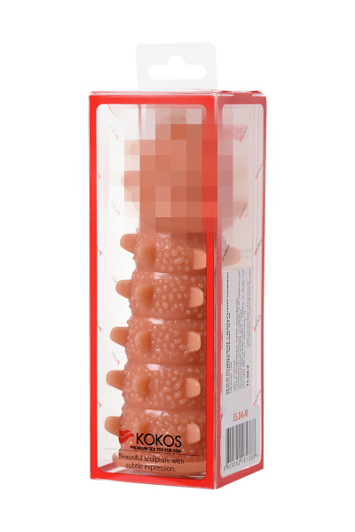 Насадка KOKOS реалистичная с дополнительной стимуляцией, TPE, телесная, 15.6 см