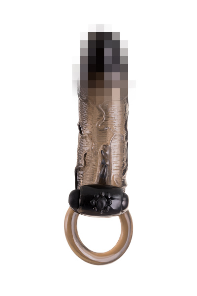 Насадка TOYFA XLover, для увеличения размера с кольцом и вибрацией, TPE, черная, 14.5 см