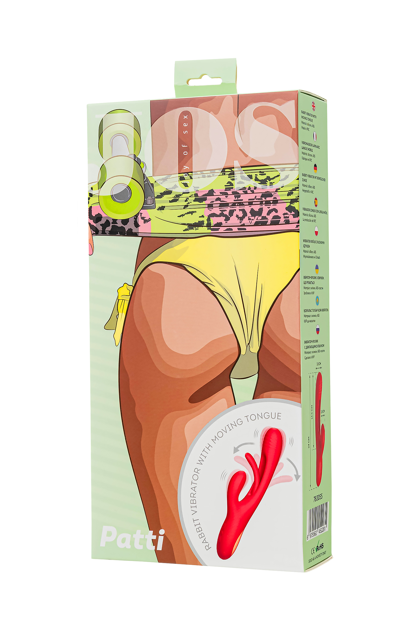 Погрузитесь в мир инновационных ощущений с вибратором с двигающимся язычком PATTI от самого необыкновенного бренда Джос! Этот невероятный технологичный дизайн поднимет стимуляцию точки G на абсолютно новый уровень. Двигающийся язычок внутри вагинальной части точечно вибрирует непосредственно на зоне G, погружая вас в водоворот удовольствия. А клиторальный отросток в это время может ласкать вас разнообразными волнами вибрации. Тройное удовольствие гарантирует оргазм с максимальным уровнем экстаза. Управляйте своим наслаждением с легкостью! Три кнопки на основании вибратора контролируют каждый аспект удовольствия. Серединная кнопка включает устройство и переключает режимы основного вибратора. Кнопки ниже управляют режимами клиторального отростка. Верхняя кнопка изменяет режимы работы язычка. PATTI выполнен из высококачественного бархатистого силикона, обеспечивая максимальный комфорт. Заряжается от USB, что делает использование еще более удобным. Простое управление тремя кнопками гарантирует, что каждая функция будет под вашим контролем. Не забывайте о правильном хранении и уходе за PATTI, чтобы он всегда оставался вашим верным спутником. Используйте лубриканты только на водной основе. Перед первым использованием полностью зарядите вибростимулятор. После использования промойте его мыльной водой и дезинфицируйте антибактериальным спреем, чтобы сохранить его гигиеничность и долговечность. Технические характеристики: 7 режимов вибрации,7 режимов работы язычка,стимуляция точки G,3 мотора,общая длина: 24 см,диаметр: 3,8 см Рекомендуем использовать до и после применения - дезинфицирующее средство для игрушки чтобы обеспечить длительное скольжение и комфорт интимных отношений, рекомендуем использовать смазку на водной основе. Хранить при температуре не выше 35 градусов, избегать попадания прямых солнечных лучей. Перед хранением стимулятор необходимо хорошо просушить